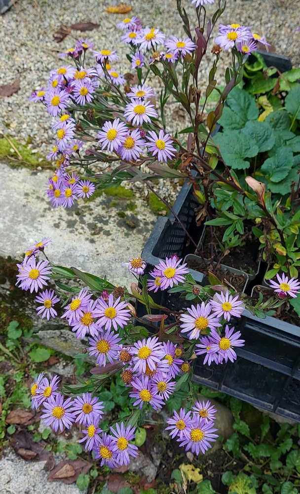 Hier war immer Aster amethystinus 'Freiburg' meine Letzte, blühte oft weit in den November. In diesem extrem feuchten Jahr ist sie schon durch, noch blüht 'Barr's Blue' und Neuzugang 'JS El Macho', siehe Bild.
