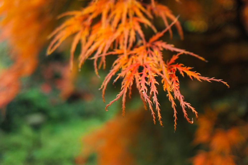 Der Palmatum dissectum imponiert wieder mit seinem herbstlichen orange.