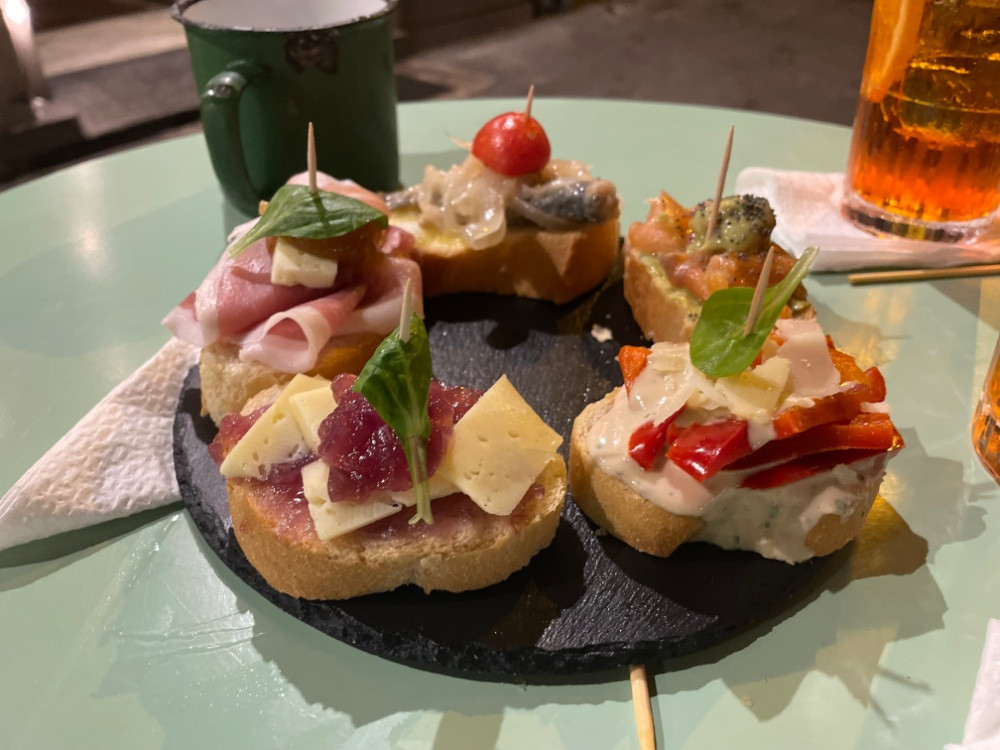 Eine Freundin hatte mich spontan für einige Tage nach Turin eingeladen. Deshalb ein paar kulinarische Eindrücke von dort. Aperol Spritz, diverse Cicchetti und Spaghetti vongole mit Bottarga. Der schwarze Streifen war gesalzene Tintenfischtinte.
