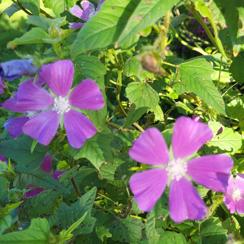 Hier blüht noch Anoda cristata, ein einjähriges Malvengewächs.Aich als Kamm-Sommermalve unterwegs Nach meinem Eindruck verträgt sie auch leichte Nachtfröste.