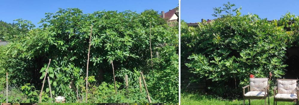 Da ein Bild mehr sagt als tausend Worte. Beide Bäume sind gleich alt und werden etwa gleich stark beschnitten.