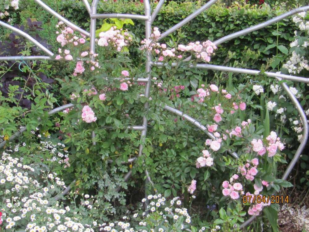 um auf die Brunnenwiese muss man durch Lindenallee, die lebende Gestelle für die Ramblerrosen sind.