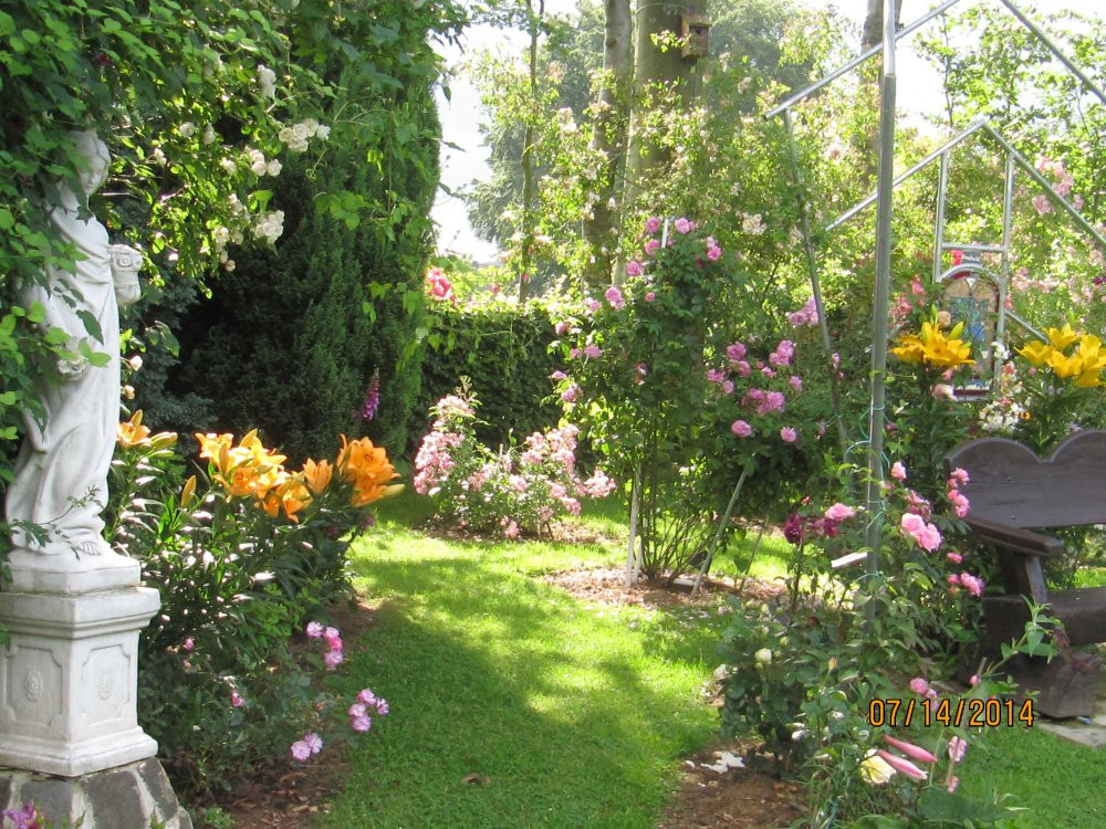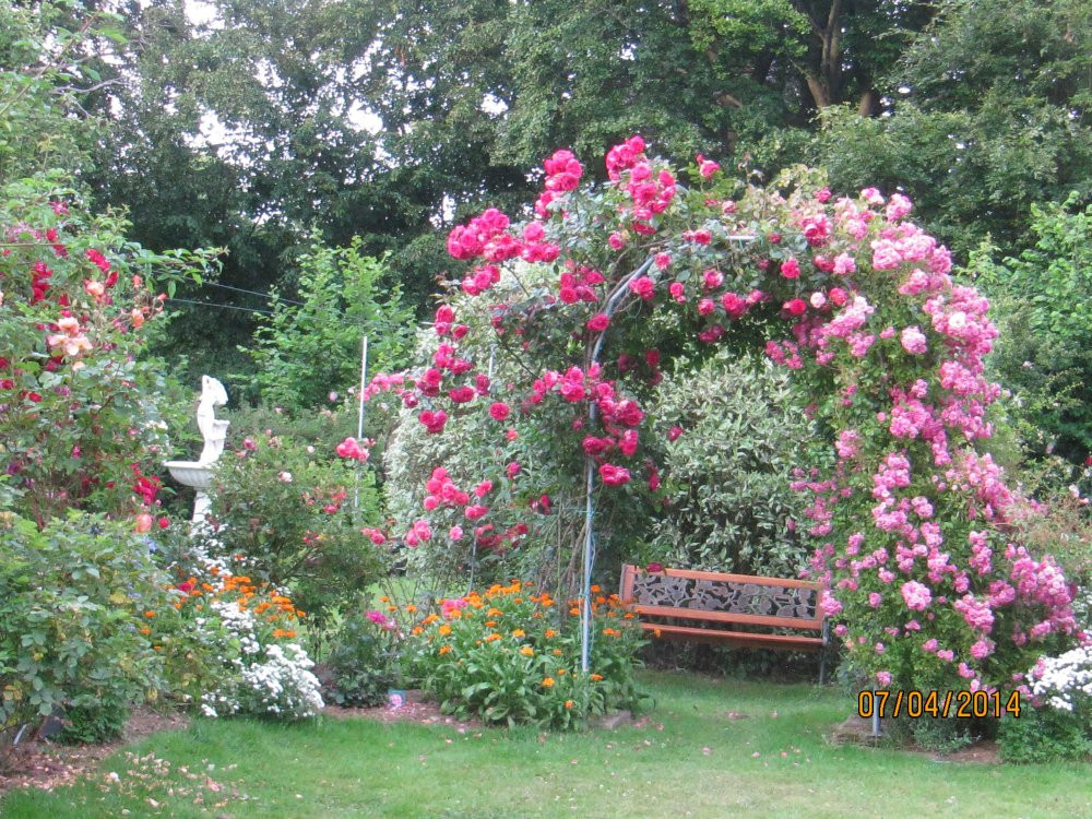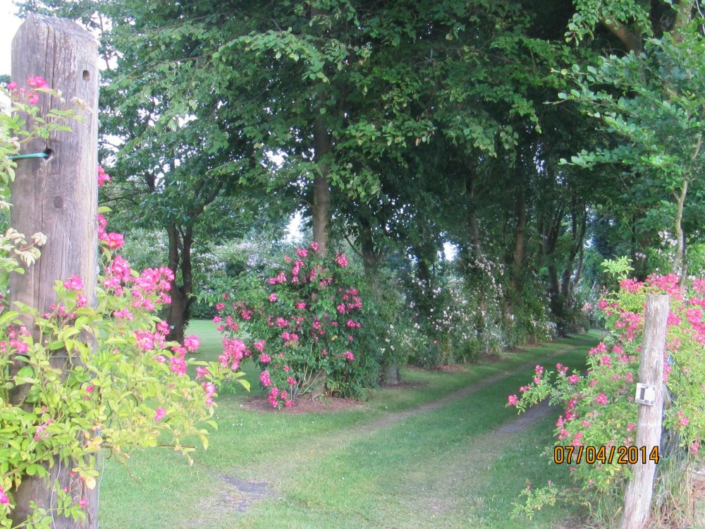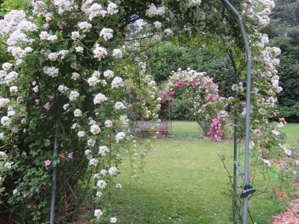 um auf die Brunnenwiese muss man durch Lindenallee, die lebende Gestelle für die Ramblerrosen sind.