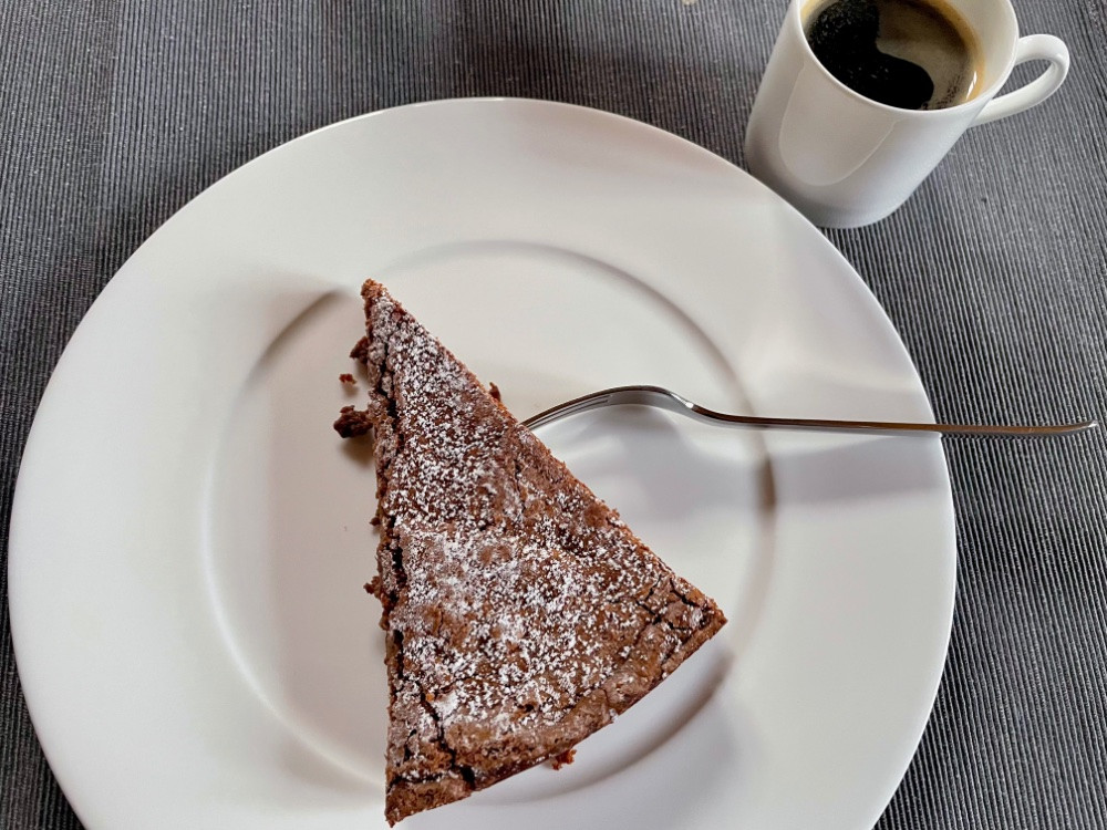 danach süchtigmachender hausgebackener markgräfler schokolade-mandelkuchen, und dem fsm-sei-dank heute nochmals zum frühstück…