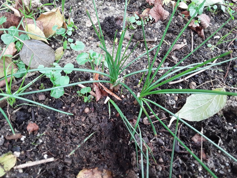 Jetzt (im vierten Jahr) habe ich gesehen, dass die ersten Zwiebeln schon angefangen haben auszutreiben.