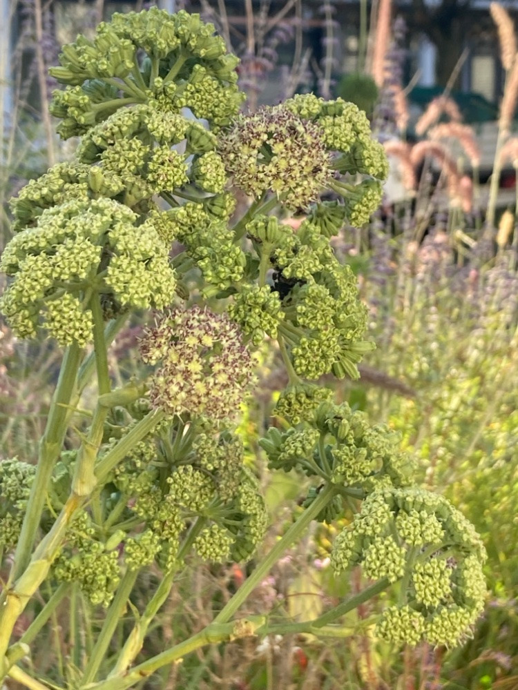 Die Samenstände des Miscanthus sind immer noch attraktiv. Es hat ja auch ewig nicht geregnet.