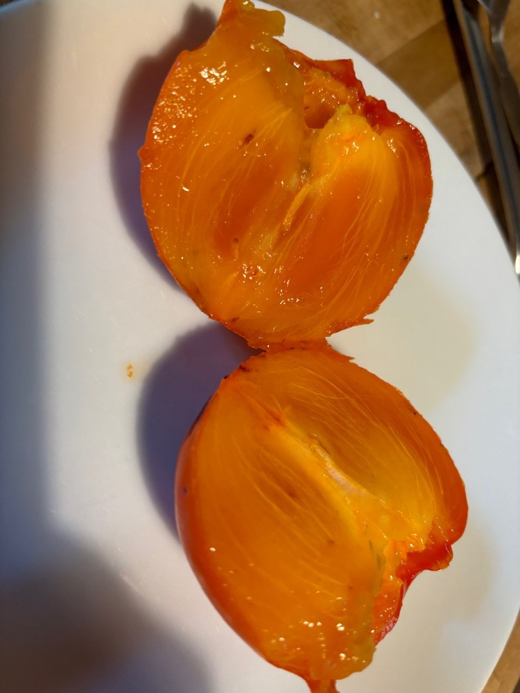 Heuer die erste Ernte von "Nikitas Gift", 20 Früchte ca. 30%-50% der Größe einer normalen Kaki. Nicht adstringierend, super Geschmack, selbst die Haut könnte man mitessen und auch keine dieser "Gelblätter" in der Frucht.