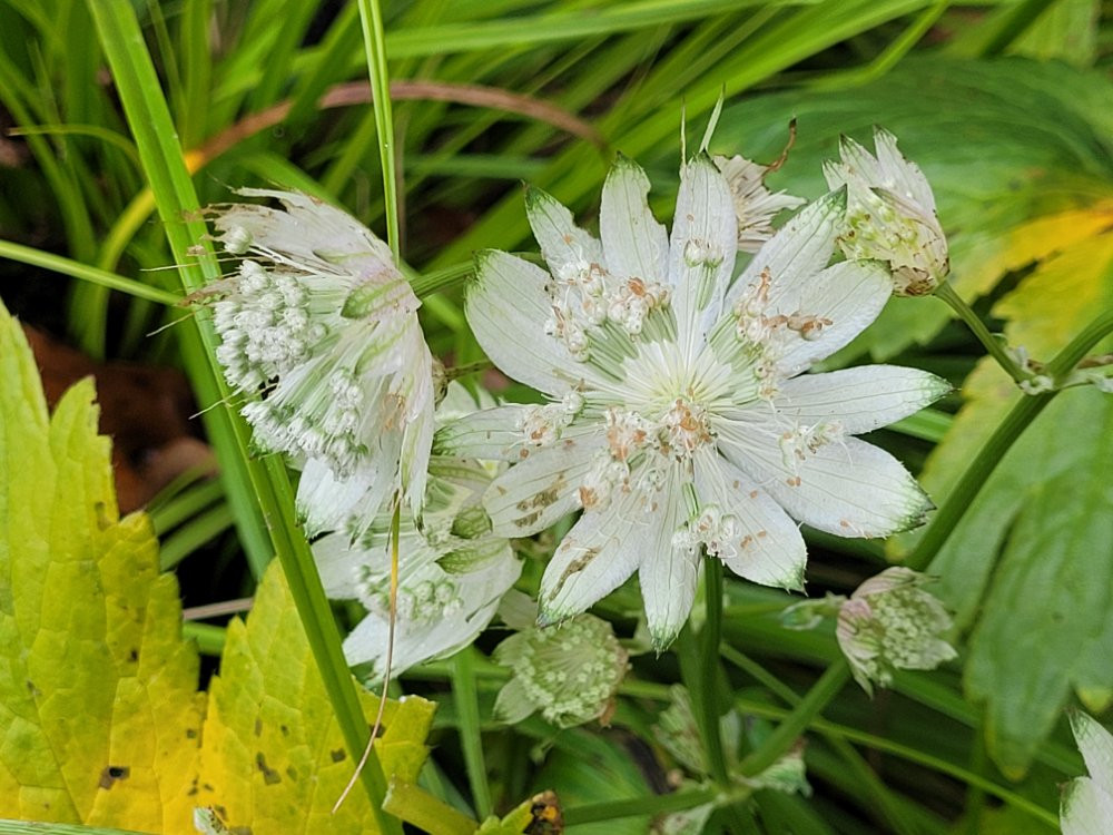 Hier gibt es nicht mehr so viel mit Blüten zu sehen. Den Preis für unendliche Blühfreude gewinnt hier Astrantia 'Canneman', die immer wieder neue Knospen schiebt und seit Monaten blüht.