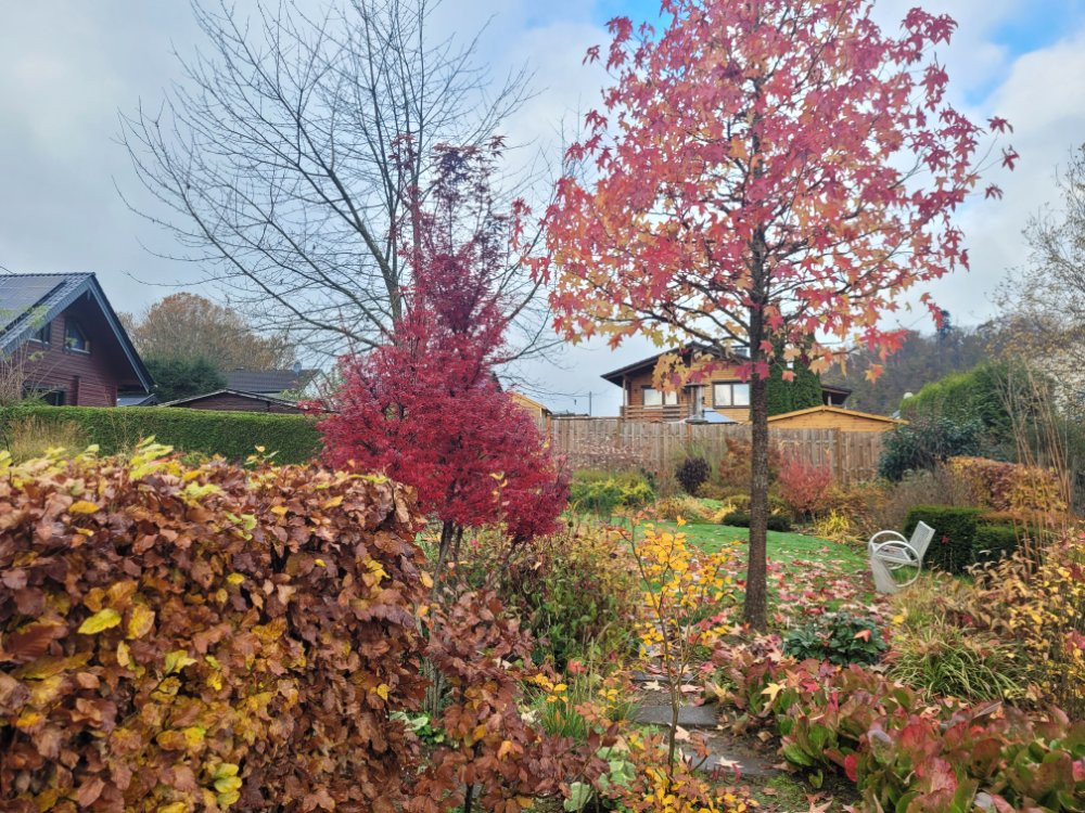Jetzt gibt es nur nochvwenig Blühendes zu bestaunen. Die Farben und Blattstrukturen der Gräser, Stauden und Gehölze ist aber- wie ich finde- nicht weniger beeindruckend . ;D