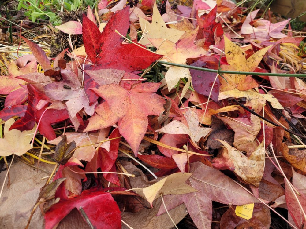 Auf so einen sonnigen Moment warte ich auch schon seit Wochen, aber die Zeitspanne, in der im November die Sonne schien, lässt sich in Minuten messen... Ungewöhnlichen Ansichten aus Deinem Garten, da kann auch der "Rücken entzücken". ;) Das rote Amberbaumlaub zwischen den immergrünen Stauden ist ausgesprochen malerisch! Was ist das für ein kleines Sträuchlein im Vordergrund am Plattenweg zwischen Amberbaum und Ahorn?
