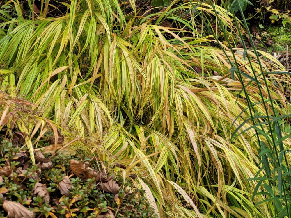 Oder Hakonechloa macra 'Aureola' unter Hortensie 'Limelight' im hinteren Terrassenbeet. :-*