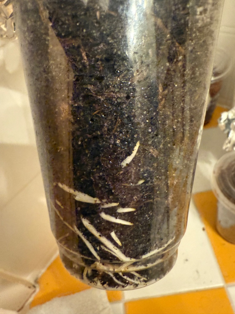 Mir gings nur um das Abdunkeln der Wurzeln. Hab es letztes Jahr ähnlich gemacht, nur in Kokos/Perlite 1:1. Abgewaschen habe ich sie mit Wasserstoffperoxid und ein wenig mit Clonex eingepinselt. Von 5 Italian-258 sind 4 bewurzelt und schön angewachsen, aber einen Meter hat keine geschafft