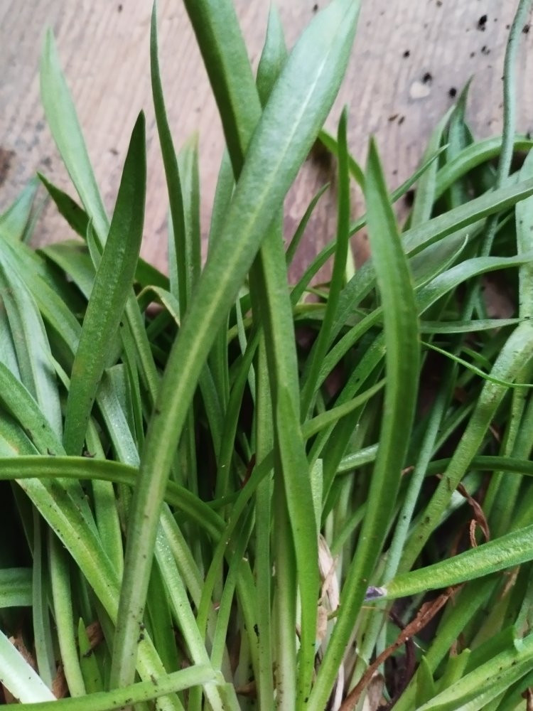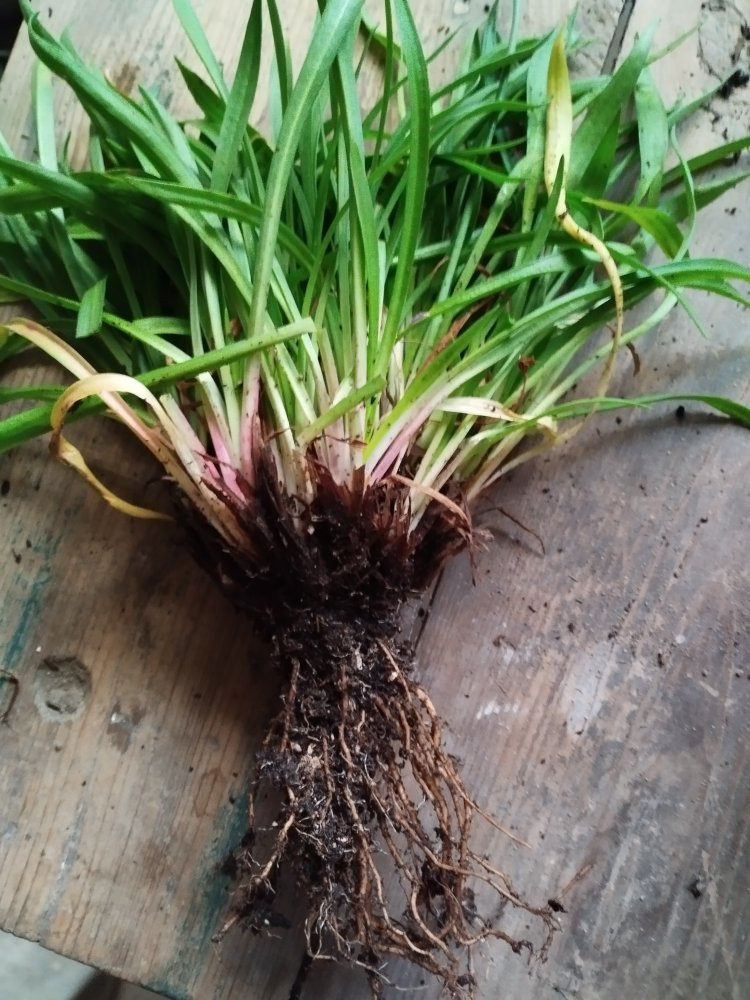Ich habe mal wieder was vom Müll mitgebracht, was ich bisher nicht bestimmen konnte. Kann jemand helfen? Sie war in eine Blumenschale gepflanzt, mag vielleicht ein Hinweis sein. Erster Impuls war Tulbaghia, Agapanthus, so in die Richtung, aber da stimmen die Wurzeln nicht, jedenfalls bei Agapanthus. Und bei meiner Tulbaghia, an deren Wurzelwerk ich keine Erinnerung habe, sind die Blütenstängel nicht hohl, was sie bei der Fundpflanze aber waren. Die Pflanze fand ich schon vor einigen Wochen, sie ist längst getopft und stand bis gestern draußen. Gern wüsste ich, in welche Richtung es geht, dann ist die richtige Überwinterung leichter zu schaffen.