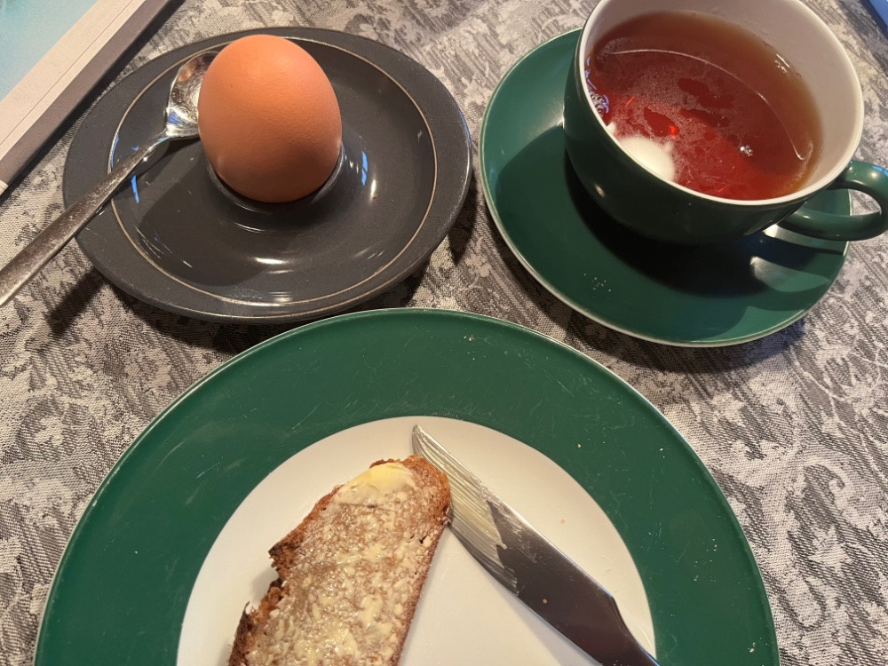 Ah, ja, heute habe ich nichts gekocht, außer Eier. Die haben wir für den Lachs gebraucht. Dazu gab es Baguette, aus Weizenmehl.