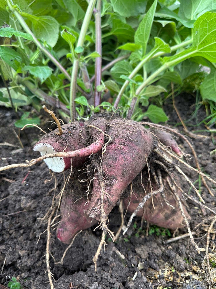Ich habe heute meine Süßkartoffeln aus einem Kübel geerntet.