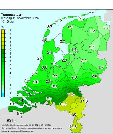 Markantes Temperaturunterschied zwisschen Nord und Sud der Niederlande: