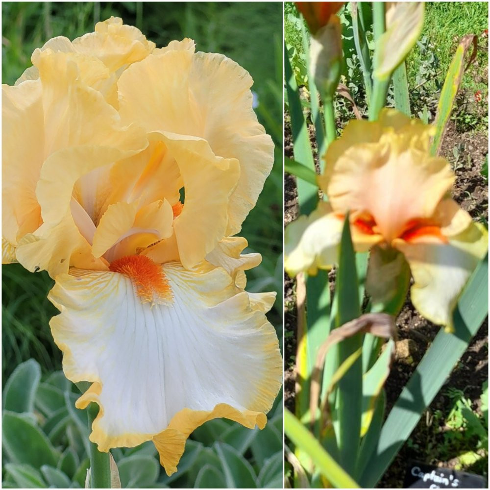 Gerade suche ich bei Bubry nach Captain Crunch - und tatsächlich, er führt sie ! Allerdings nicht unter "gelb", sondern unter "orange". Da schon fast 200 Sorten unter "gelb" kamen, hatte ich nicht noch bei anderen Farben gesucht. Unter seinen 141 Iris "orange" führt er noch ähnliche, wie Carnoët oder Orangelo - und mein Bild ist leider etwas unscharf, wenn man es vergrössert. Vielleicht frage ich mal den Meister persönlich. Wenn sie nächstes Jahr wieder blüht, versuche ich ein besseres Photo.