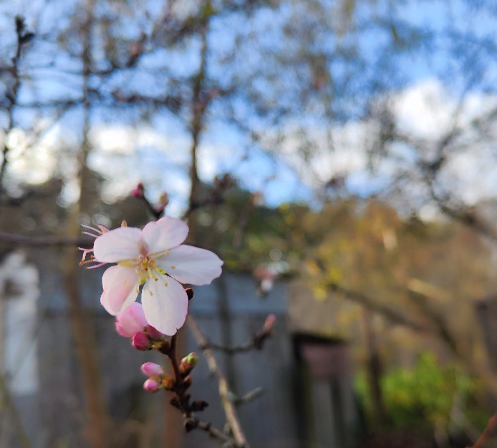 Hier blüht schon Jasminum nudiflorum und Prunus subhirtella 'Autumnalis'.