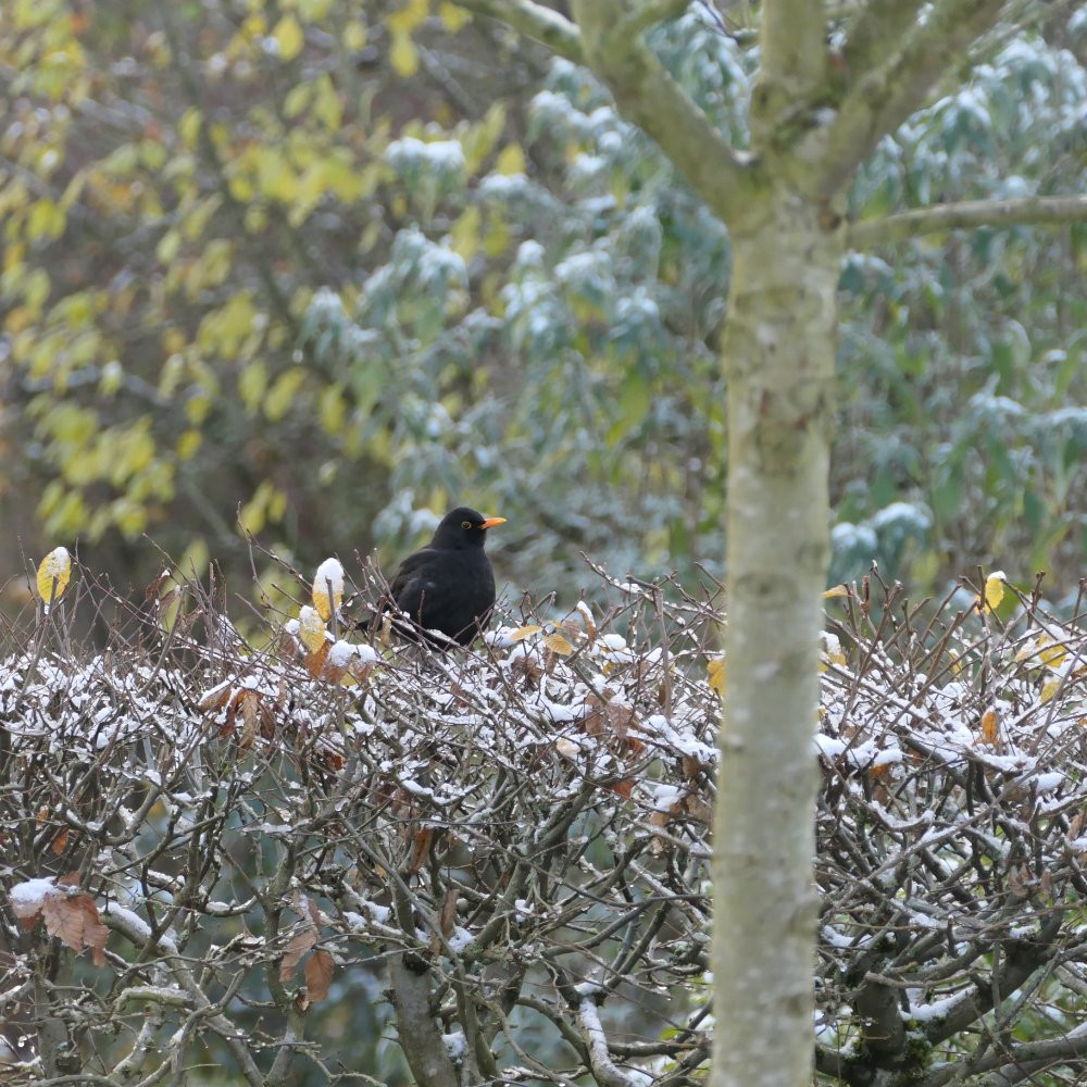 Amseln füttere ich nicht. Zumindest nicht mit Vogelfutter, es gibt Beeren und Obst genug im Garten und heruntergefallenes Futter sammeln sie auch auf.