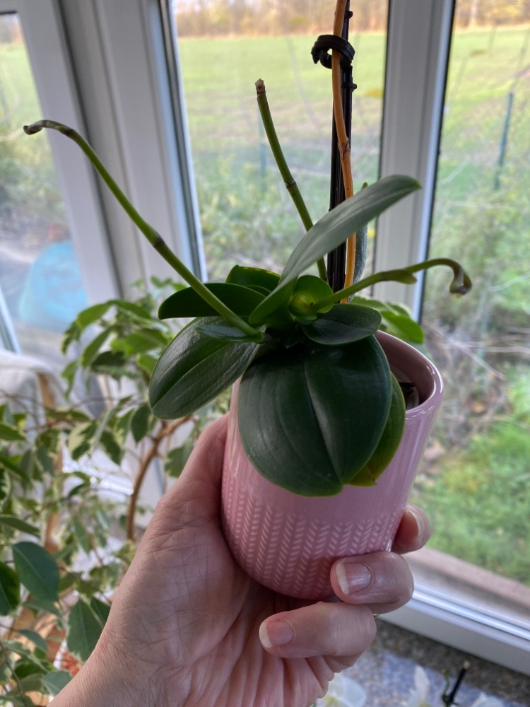 Meine Kuriositätenorchidee hat sich entschieden zwei Blütentriebe zu schieben und das neueste Herzblatt entfaltet sich nicht ???