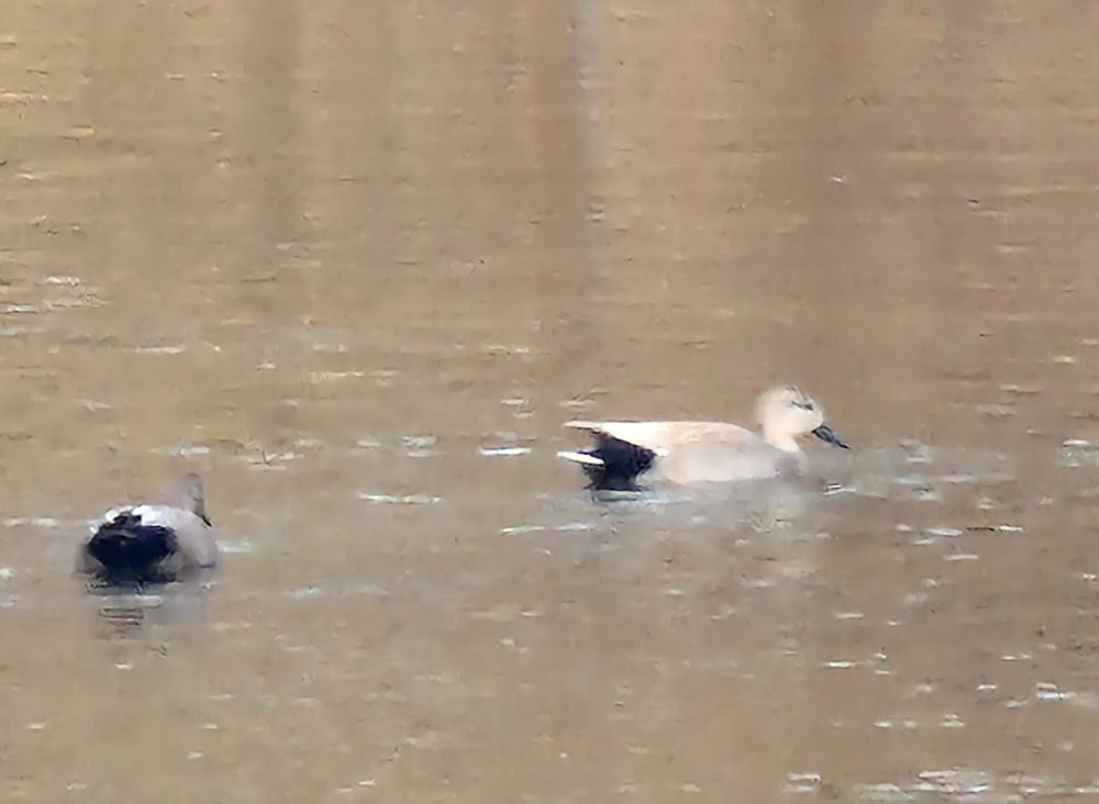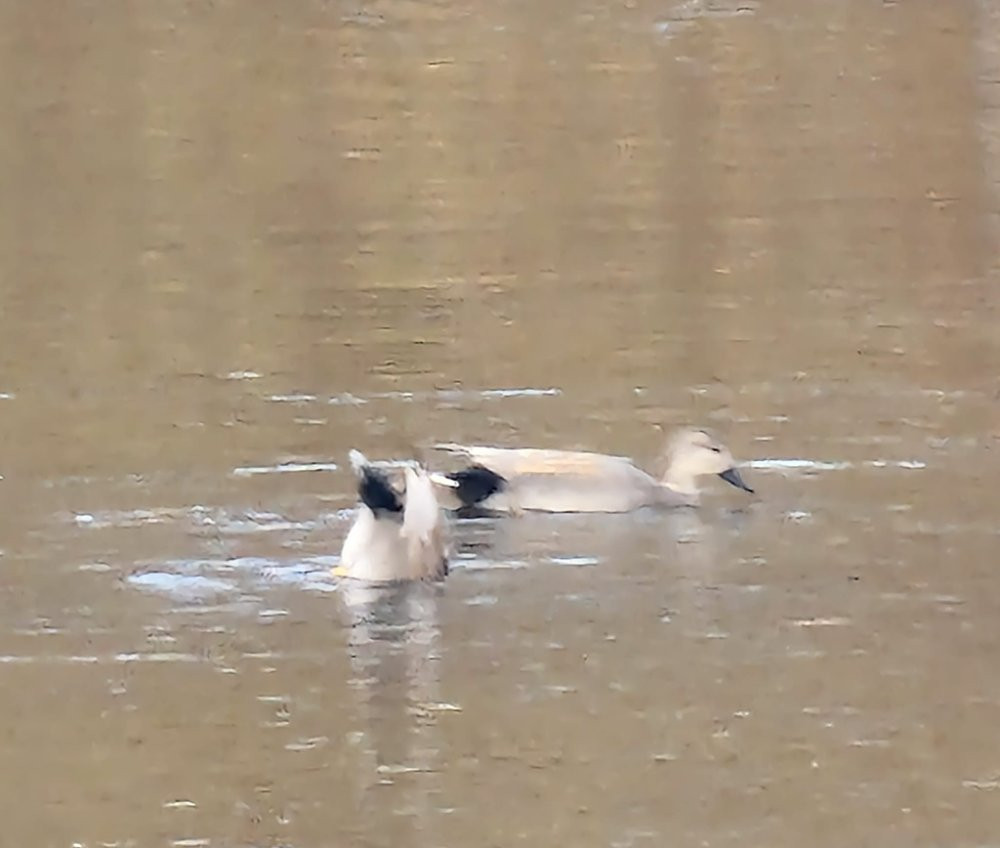 Ich würde auch sagen Schnatterente. In dem Fall zwei Erpel (schwarzer Schnabel) fallen etwas hell aus.