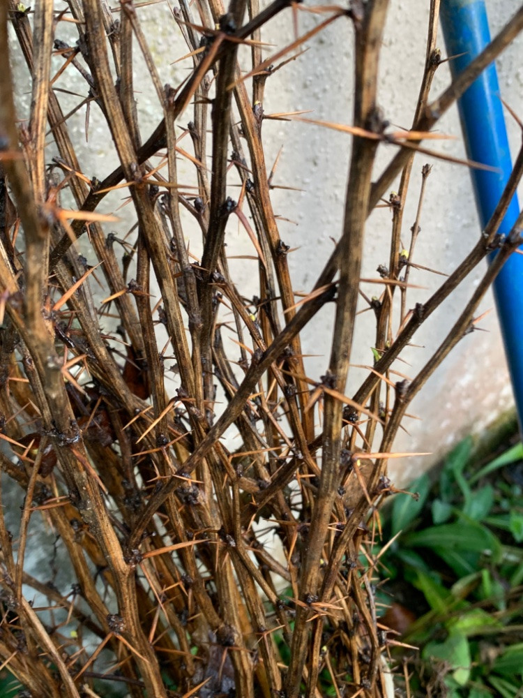 Die Dornen mag ich deshalb nicht, denn davor steht im Abstand von 2m eine Rose, und da muss ich doch hie und da hinkrabbeln. Eigentlich möchte ich auch nicht wirklich 2x im Jahr schneiden müssen.