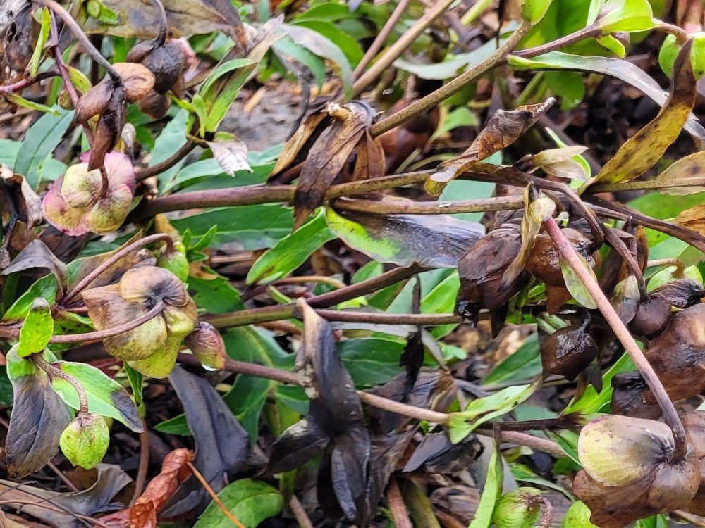 Dieser Helleborus ist nicht mehr zu retten. In meinen Augen sind die Züchtungen Blumensträuße und blühen sich tot. Unsere sah nach 6 Monaten genauso aus.