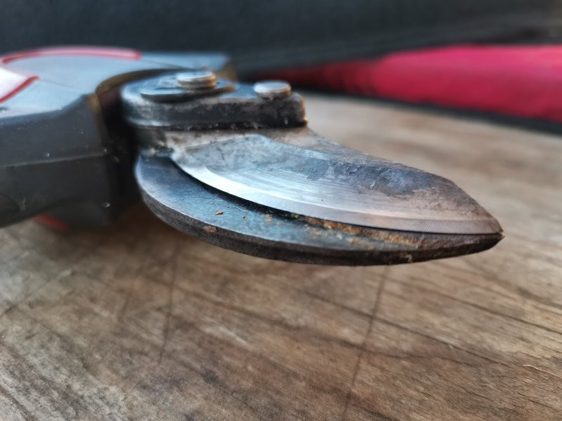 Die Schneide der ersten Fiskars-Astschere hab ich nach 15 Jahren dann mal geschärft, hab aber ein paar Jahre später eine neue gekauft, weil ich dann eine Kerbe in der Klinge der alten hatte, hab wohl irgendwo einen dickeren Eisendraht aus Versehen mit erwischt, solche Reste von Spanndrähten von Zäunen von vor 50 Jahren, in Hecken eingewachsen, tauchen immer noch manchmal unvorhergesehen auf.