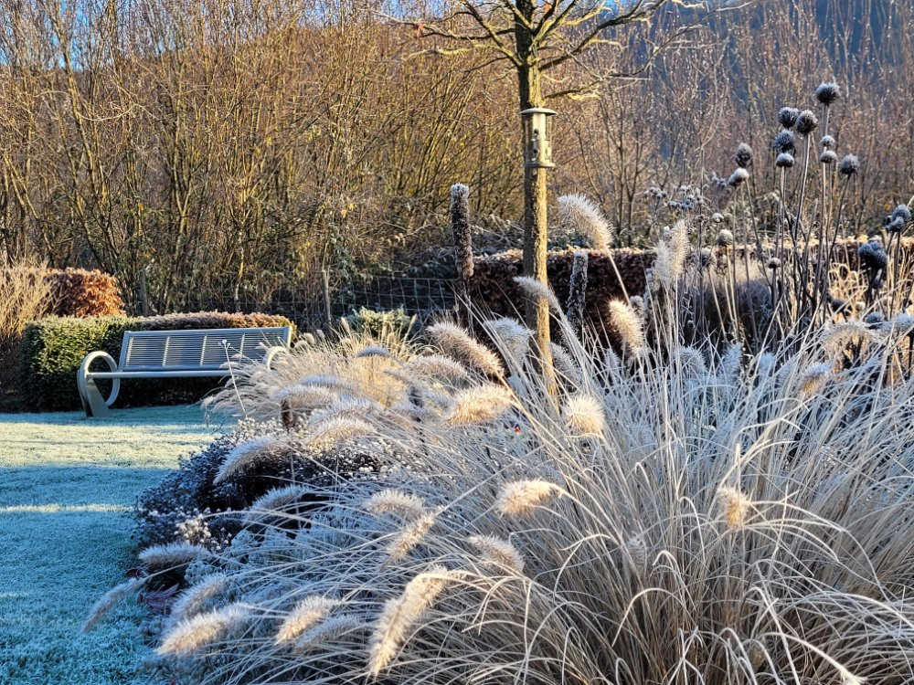 Besonders im Präriebeet treten jetzt die vom Reif erstarrten Strukturen wunderschön hervor. :-*