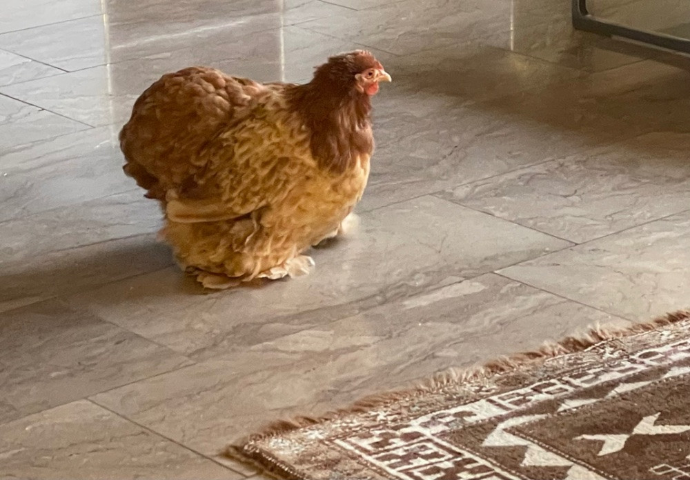Bei dem Wetter hat sie zur Zeit keine Lust raus zu gehen. Das wird ihr natürlich angeboten. So verrückt es ist, wir haben uns richtig daran gewöhnt ein Huhn im Haus zu haben.