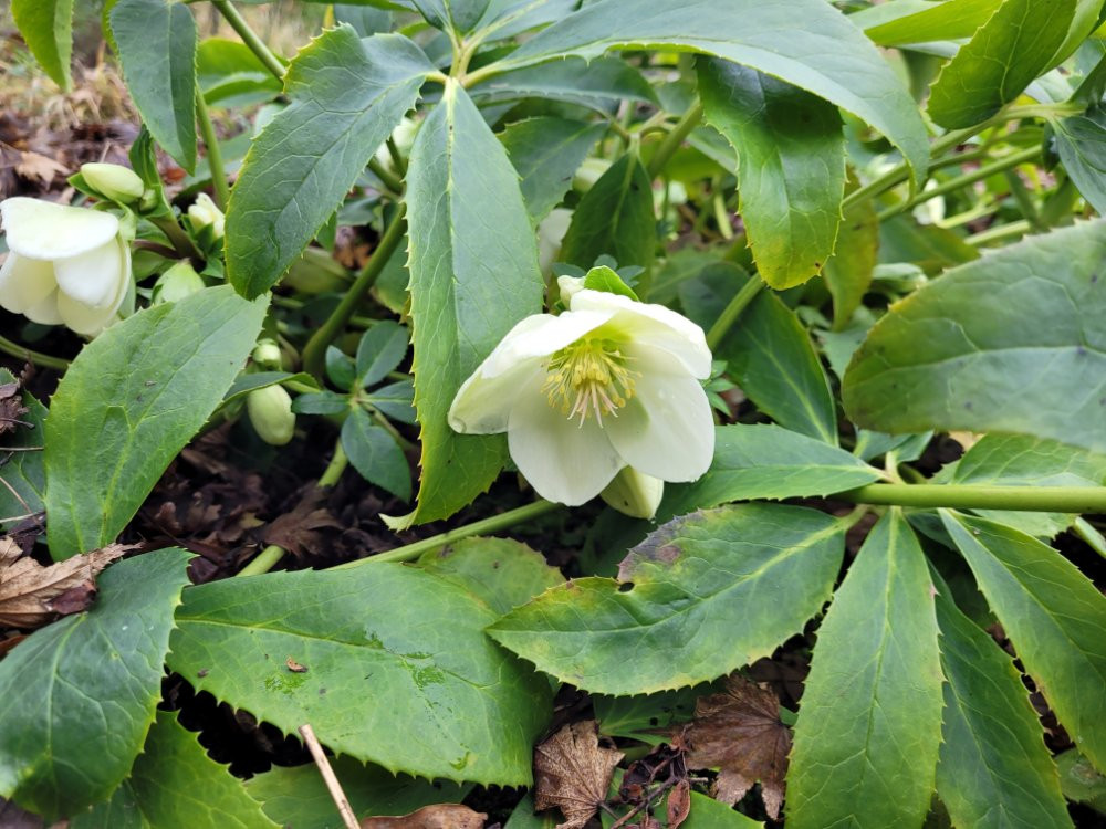 Helleborus Mont Blanc scheint eine etwas höhere Sorte zu sein hier im Vergleich zu HGC Jerry: