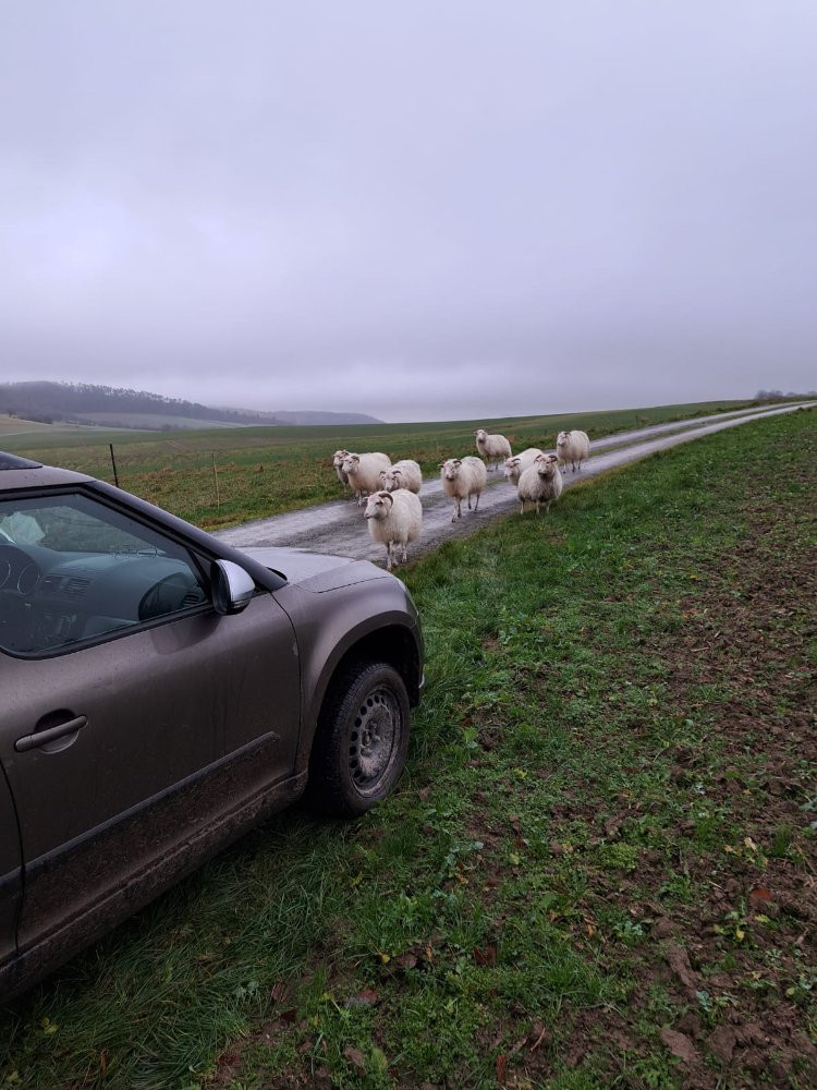 Ja ne. Da hätten wir dann 2 fremde Herden auseinander sortieren müssen. Im Klartext hätte das geheißen: Konglomerat verladen und in der Scheune sortieren. Und ich meide dem seine gekaperten Flächen, weil Leineschafe nun mal eher häufiger Klauenprobleme haben. Da könnte man sich vorstellen wie begeistert