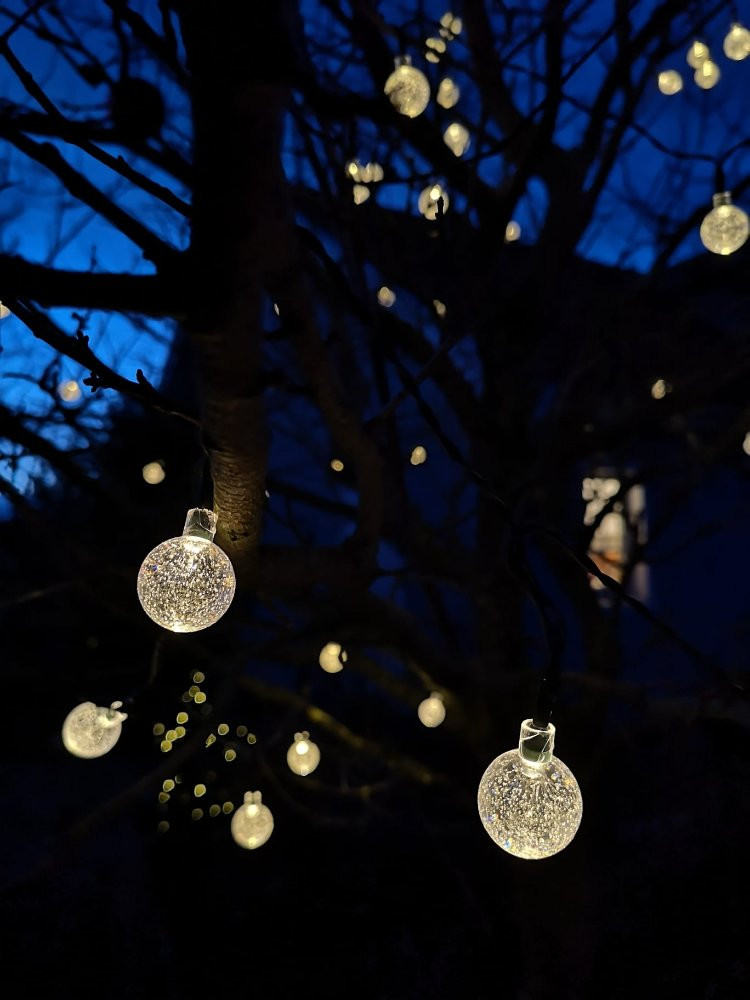 GG hat dieses von den Weihnachts-Solarlichtern in unserer Blutpflaume gemacht.