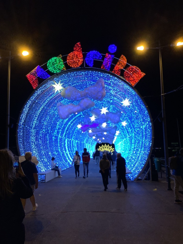 über einen Barranco gibt es blaue Ketten, über einen anderen rote Lichterketten
