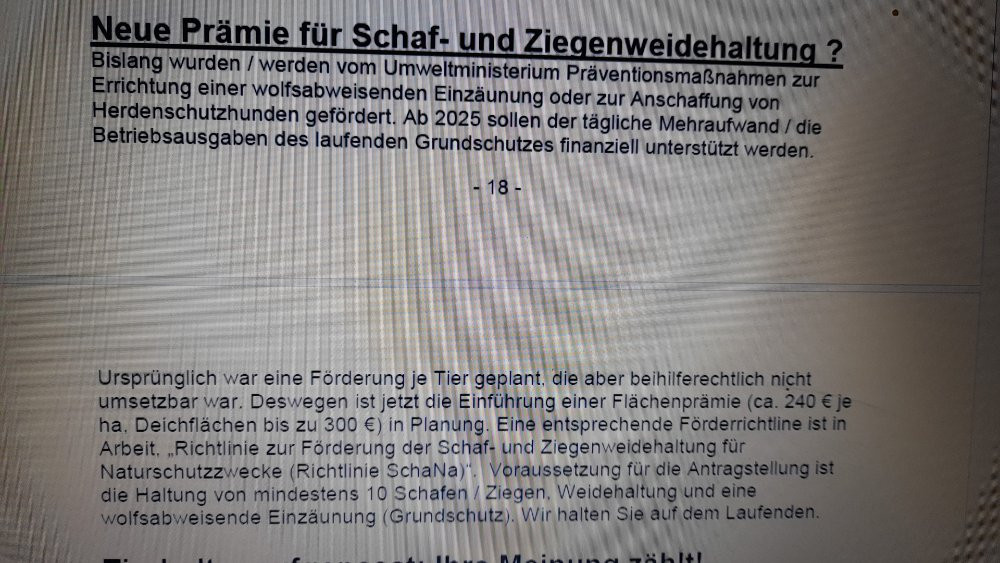 Zum Totlachen ist dagegen, dass es für die Deichschäfer mehr gibt. Haken: Wenn sie denn wolfssicher zäunen. Und gerade das geht bei vielen da eben nicht. Weil da der Weg für den Deichverband oder ein Touri-Weg durchgeht. Also man hätte erkannt wie wichtig die Deichschäferei ist. Mit weiteren Erkenntnissen hat man sich zurückgehalten