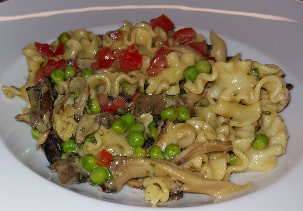 Ich habe heute ein Pilzrisotto gemacht, mit Kräutersaitlingen, Zwiebeln, Möhren, Knoblauch und Petersilie. GG war für den Salat zuständig, Chicorée mit Granatapfel und Yakon. Die Qualität von dem Chicorée (gekauft) war mal wieder mäßig, ein großer Teil der Blätter hatte eingesunkene braune Flecken. Das hatten wir in den letzten Wochen häufiger .
