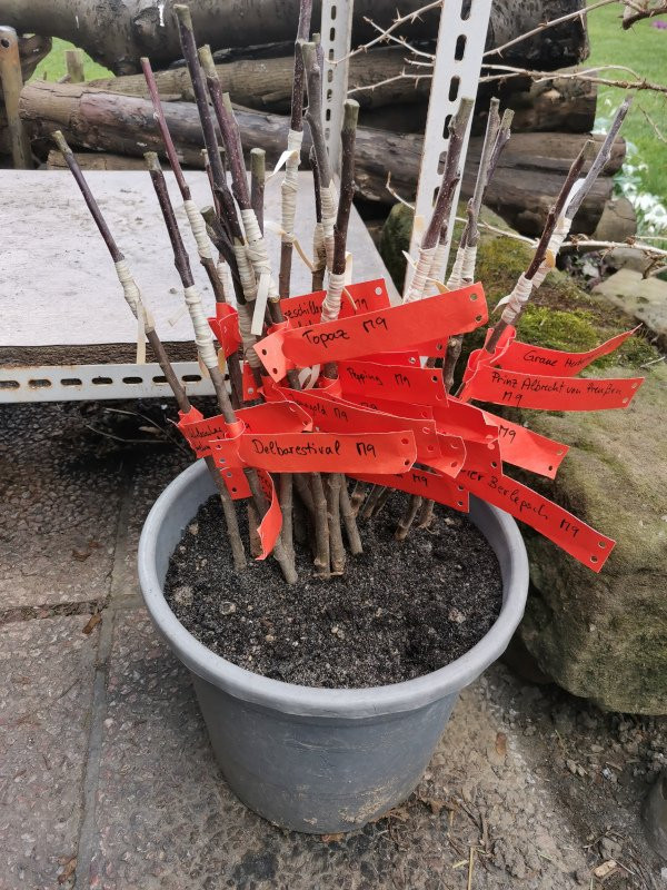 Man kann dann gleich im Januar veredeln, wenn man Unterlagen und (eigene) Reiser hat. Dann würde ich diese in einem Kübel einschlagen und im Frühjahr erst einmal in ein Beet auspflanzen. Die Unterlagen für die Veredlung der Reiser, die erst im April kommen, würde ich auch in einem Kübel einschlagen und dann im April handveredeln. Die Veredlungen bzw. unveredelten Unterlagen im Einschlag würde ich kühl, aber +- frostfrei aufstellen.