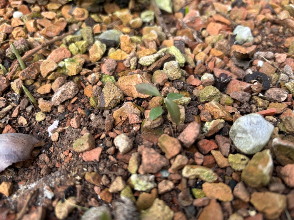 Niemand eine Antwort. Also schreibe ich mal meine Vermutung: Clematis armandii, weil nur darunter massiv Sämlinge sind. Total absurd?