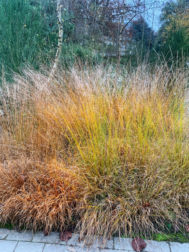 Molinia caerula hat jetzt schon eher einen beigen Stroh Ton