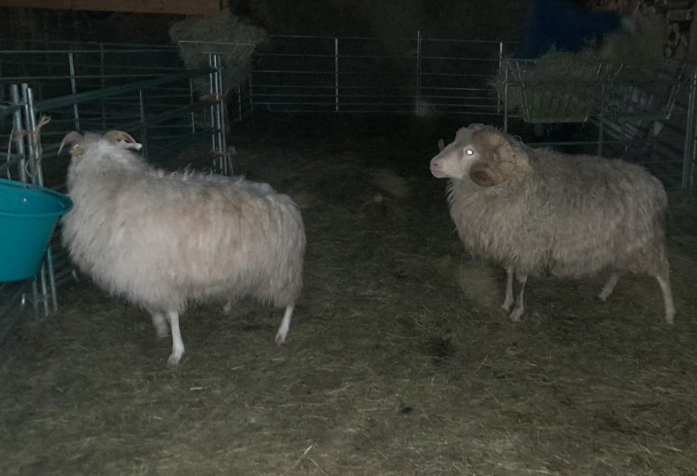 Nachdem das Piepen sehr viel Zeitersparnis liefert, konnten wir dann noch Mert und die Lämmer verladen und Mert gleich wieder in die Scheune ausladen werden. Dort wartete eine Hilla unter Schock. Sie hat das halbe Inventar auseinander genommen und blieb dem Himmel sei Dank unverletzt. Zu ihrem Ensetzen kam dann Mert, der sie gleich beglückt durch die Scheune scheuchte. Hilla findet das höchst gewöhnungsbedürftig. Mert ist im 7. Himmel