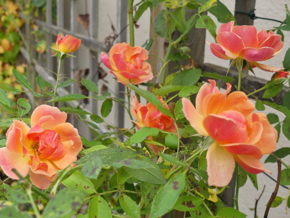 Hier wird es langsam wie in südlichen Ländern – die Rosen blühen im Frühling schön, im Sommer machen sie lange Pause, im Herbst wachsen sie wieder und blühen bis Weihnachten. Viele bleiben bis zum Frühlingsschnitt im Februar belaubt, Pilzkrankheiten sind kaum Thema. Auf Rosenblüten im Sommer verzichten fällt mir schwer, zum Glück gibt es Phloxe und andere Sommerblüher.