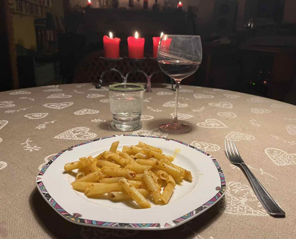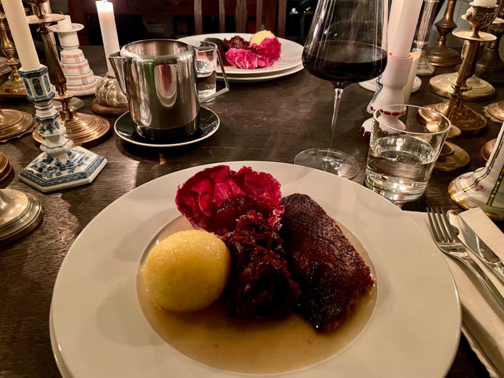 Vorgestern gab es Taubenragout mit Polenta, gestern waren wir bei Freunden zu Wein und leckeren Schnittchen eingeladen.