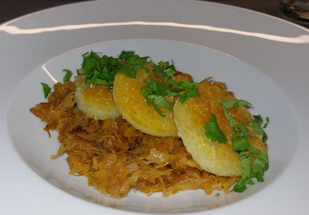 Hier gab es badisches Schäufele mit Sauerkraut und Kartoffeln.