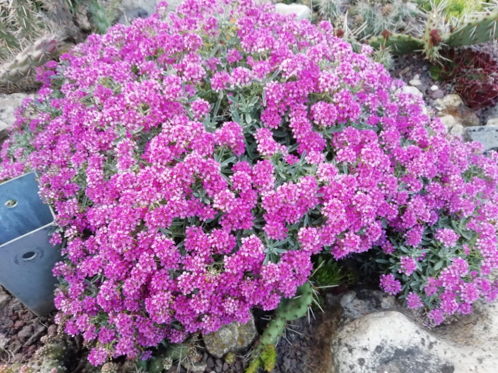 Wenn Du ein trockenes mediterranes Beet anlegen willst, ist Alyssum spinosum rubrum eine sehr schöne Pflanze. Inzwischen ist die Pflanze umbenannt aber ich habe sowieso Probleme mit den lateinischen Namen.