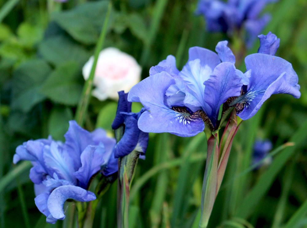 Wegen häufiger Abwesenheit sehe ich viele Blüten nicht in natura sondern nur später auf den Fotos, die GG für mich macht. Iris sibirica sind pflegeleicht, kommen i. d. R. gut alleine zurecht und bekommen daher hier meist nicht die Aufmerksamkeit, die ihnen zusteht. Das zu ändern habe ich mir zumindest fest vorgenommen.