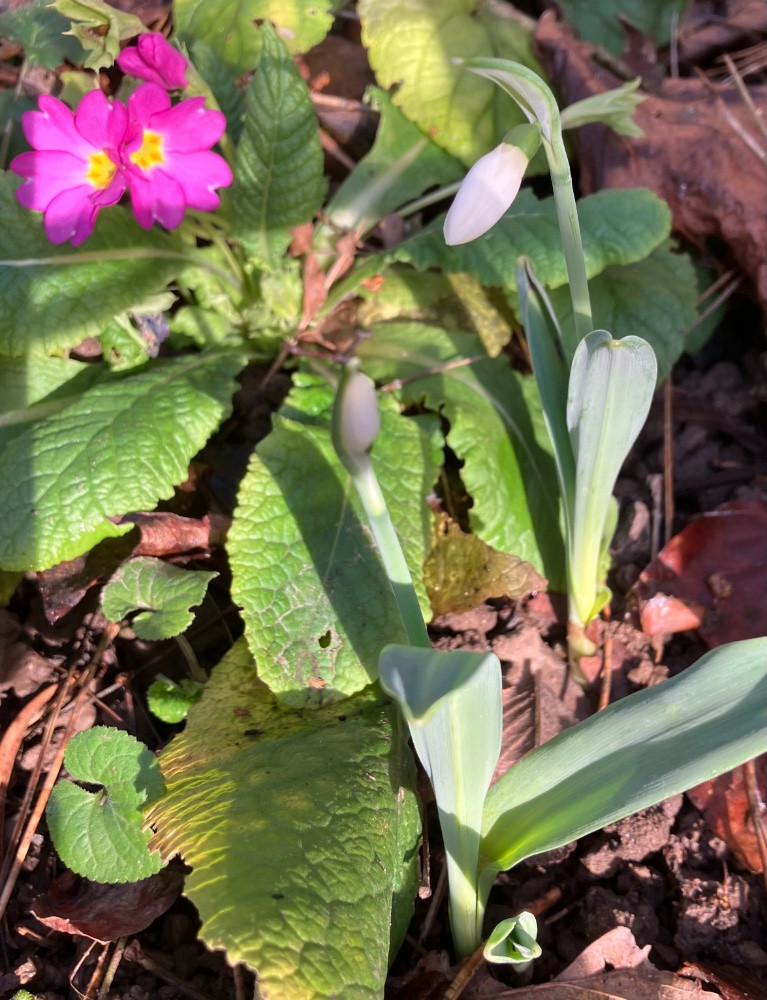 Heute war es etwas wärmer als gestern, dafür aber ziemlich windig. Egal, ab und zu kam sogar die Sonne ein bisschen heraus, also habe ich zunächst meine restlichen Krokusse gepflanzt und das Wiesenstück mit einer Schnur markiert, damit ich und andere später nicht versehentlich drauftreten. Da es morgen leider schon wieder den ganzen Tag regnen soll, habe ich das durch den Wind abgetrocknete Tamariskenlaub zusammengefegt (geht nur, wenn es wirklich ganz trocken ist) und nochmal das Laub vom Runzelblättrigen Schneeball von meinem Schattenbeet geklaubt und dabei die austreibenden Schneeglöckchen bewundert.