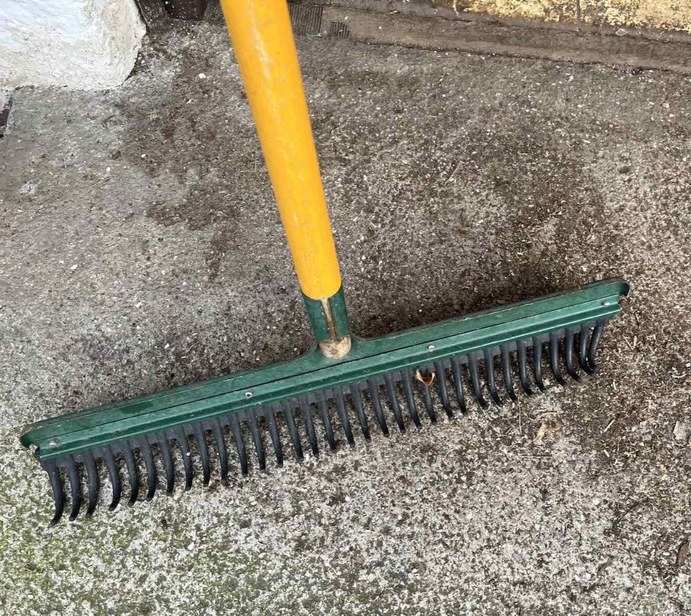Für das Zusammenrechen des Herbstlaubs habe ich einen Rechen mit Gummizinken, mit dem man gefahrlos durch Beete gehen kann, man beschädigt keine Pflanzen. Er ist zwar leider grün, aber bei 50 cm Breite kann er kaum verlorengehen.