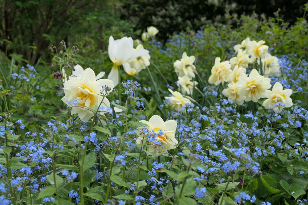 Die einfachen grünen Brunnera säen sich bei mir im Garten stark aus. Solange es passt, lasse ich sie gewähren, ich mag die duftigen Blütenwolken im Frühling. Gelegentlich sind Exemplare mir getupften Blättern dazwischen, obwohl ich die Sorte 'Langtrees' nie hatte.