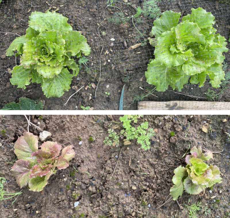 Bei den Hitzeproblemen vieler Sorten, ganz besonders den (gutschmeckenden) Älteren was 2024 wenigstens mal fast normal - wenn die Schnecken nicht alles weggefressen hätten. 2023 brachte die hier bereits beschriebene Kombination aus Sorten die keinen dichten Kopf bilden plus besser Halbschatten vertragen ebenfalls etwas, die guten Erfahrungen mit Bataviasalat "Leny" bestätigten sich. Der ist freilich nicht mit der Qualität eines Grazer Krauthäuptel zu vergleichen, aber immerhin.