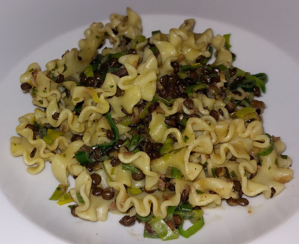 Pasta mit Linsen und Porree in Gorgonzolasoße